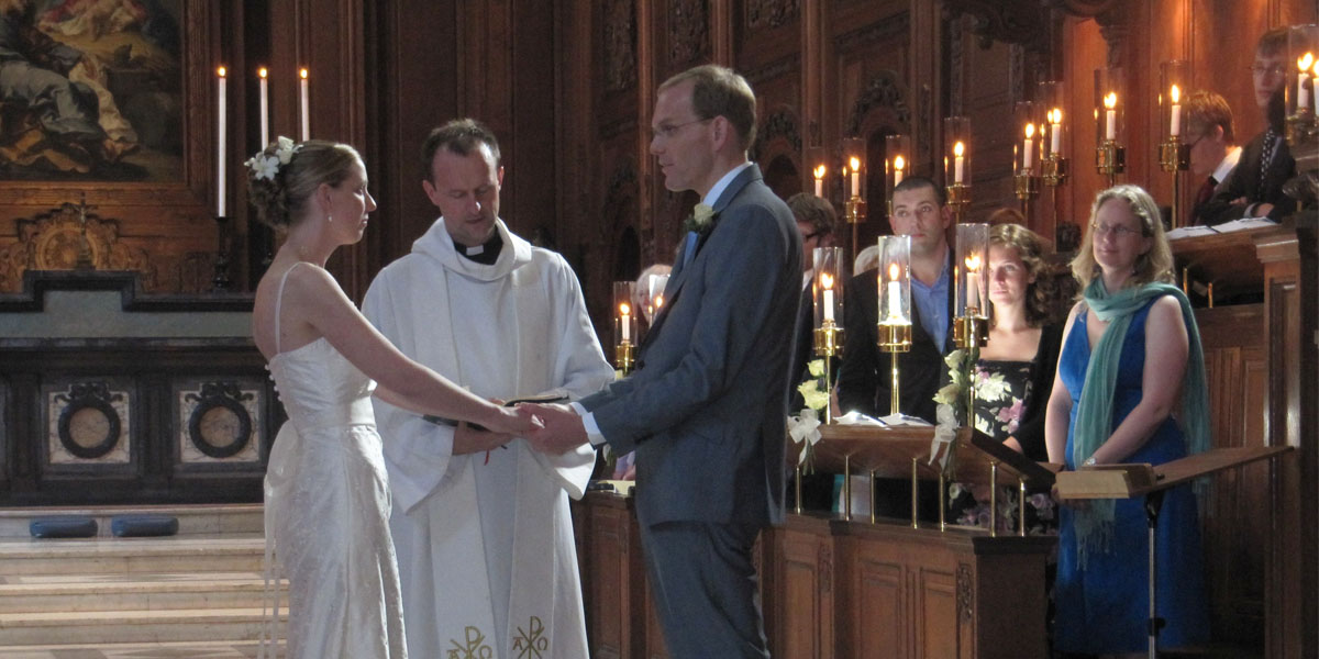 I cut the back of the gown into a sweeping train that trailed gracefully behind Helen as she walked. The silk dupion captured and reflected the light with every step, transforming her entrance down the gleaming marble aisle of the historic church into an unforgettable moment.